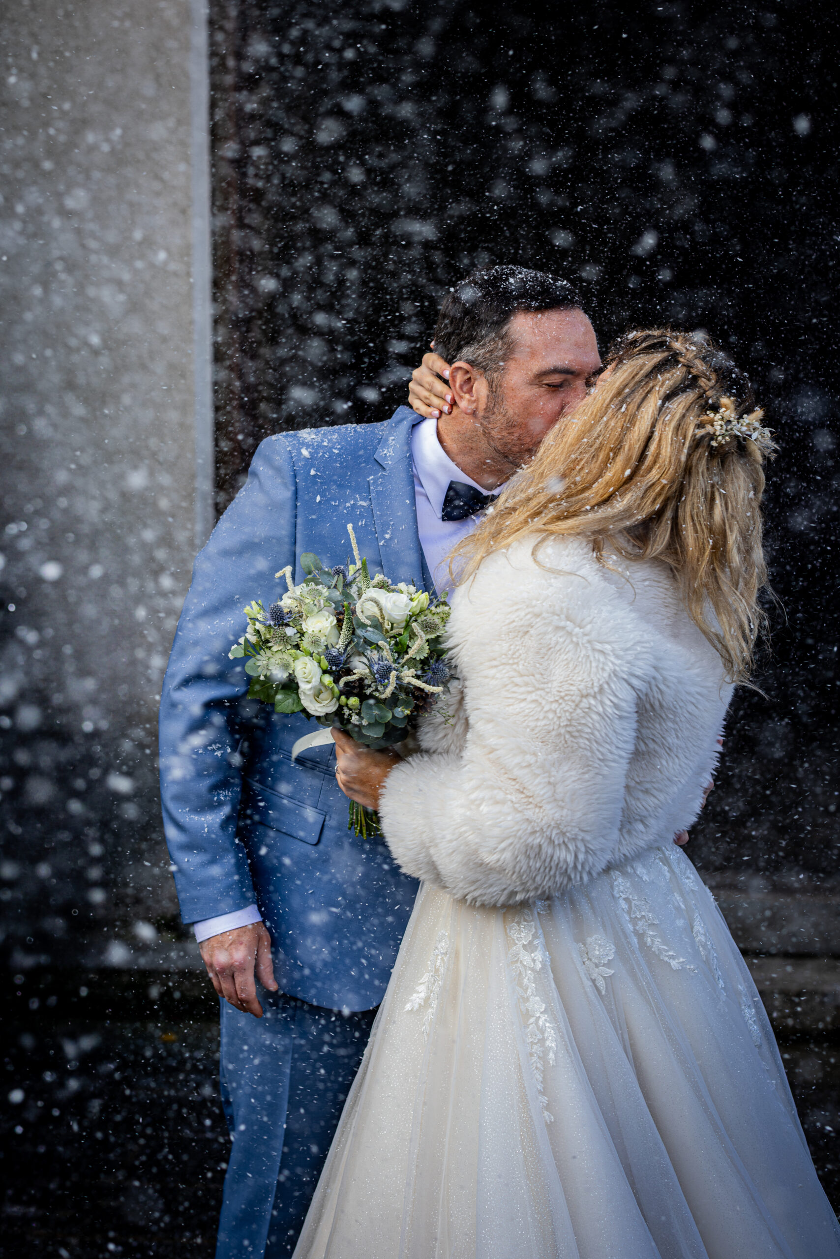 Lorely & nicolas- sortie d’église sous la neige près de Nantes