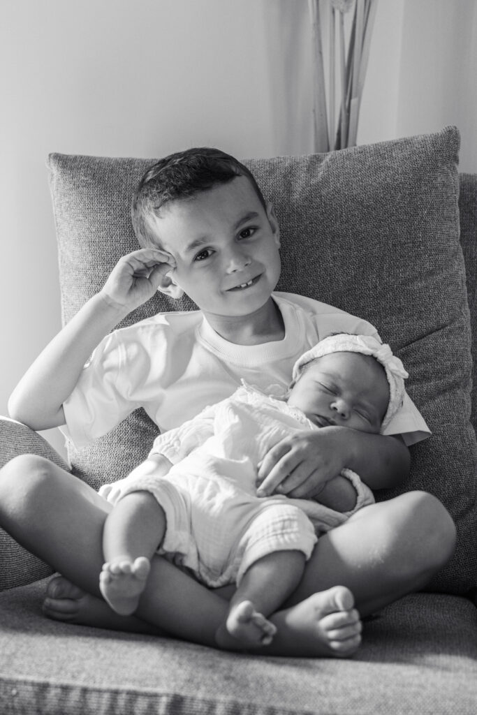 Les grands frères et grandes sœurs sont les bienvenus lors de la séance. Ils auront le droit aussi à leur moment photos tendresse avec bébé.